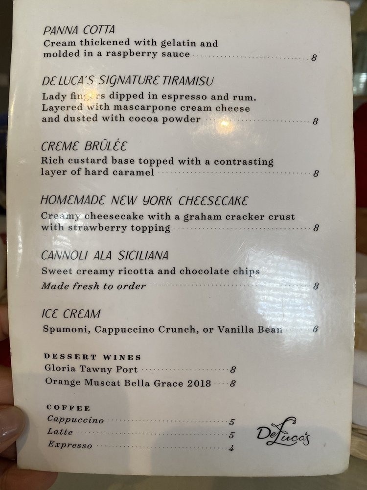 De Luca's Restaurant offers a wide range of Italian dishes with a focus on quality and freshness. Located in Whittier, CA, this Latinx-owned restaurant provides a welcoming and cozy atmosphere that makes you feel at home. Customers rave about the attentive service, from the friendly wait staff to the excellent recommendations. Standout dishes include the garlic puffs, homemade ravioli, and the flavorful spaghetti and meatballs. The menu also caters to various dietary preferences with many vegetarian and pescatarian options available. With a full bar, heated outdoor seating, and private dining options, De Luca's is ideal for casual dining, special occasions, and group gatherings. If you're in the mood for authentic Italian cuisine served with charm and hospitality, De Luca's Restaurant is a must-visit spot in the area.